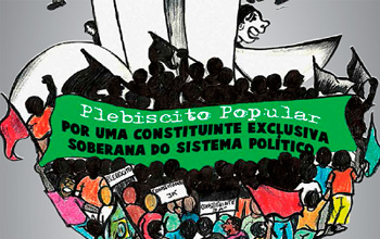 A CUT São Paulo assume como bandeira para o próximo período a construção de um Plebiscito Popular pela defesa de uma Constituinte Exclusiva e Soberana do Sistema Político. Essa proposta, entre outras questões, aponta para uma democracia participativa e para o financiamento público de campanha como as principais urgências. (Arte: Diva Braga/CC)